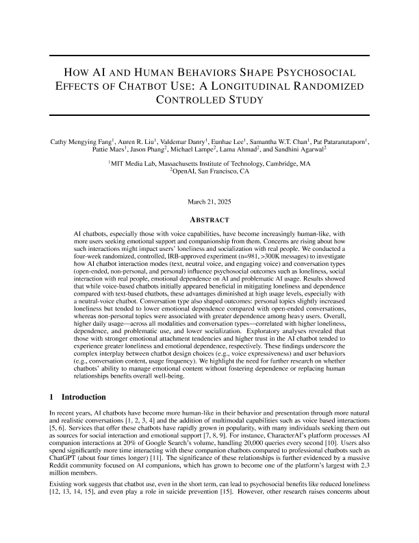 【MIT Media Lab】【20250321】人工智能与人类行为对聊天机器人社会心理效应的影响-50页