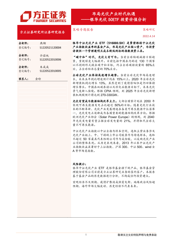【方正证券】【20220414】银华光伏50ETF投资价值分析:布局光伏产业时代机遇-16页