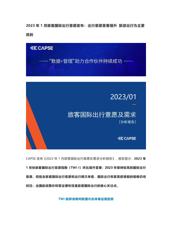 【CAPSE】【20230102】2023年1月旅客国际出行意愿发布:出行意愿显著提升 旅游出行为主要目的-6页