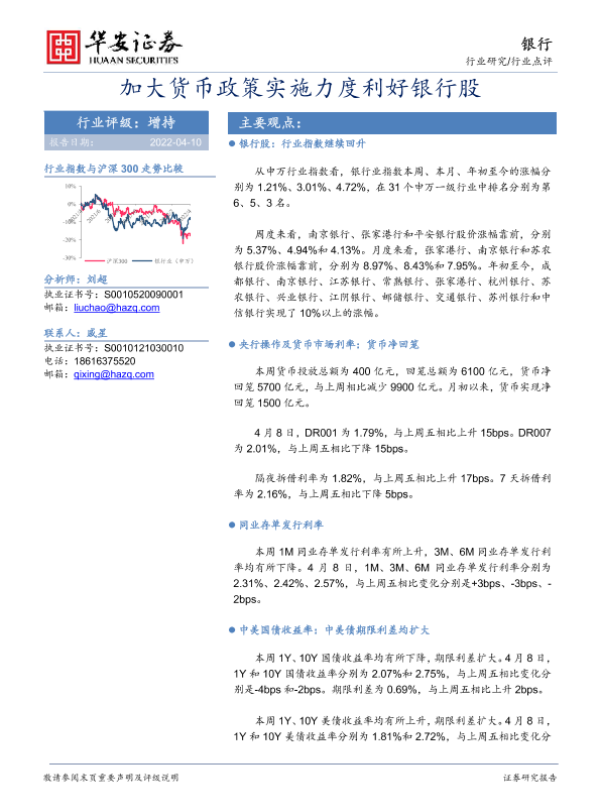 【华安证券】【20220410】银行业:加大货币政策实施力度利好银行股-22页