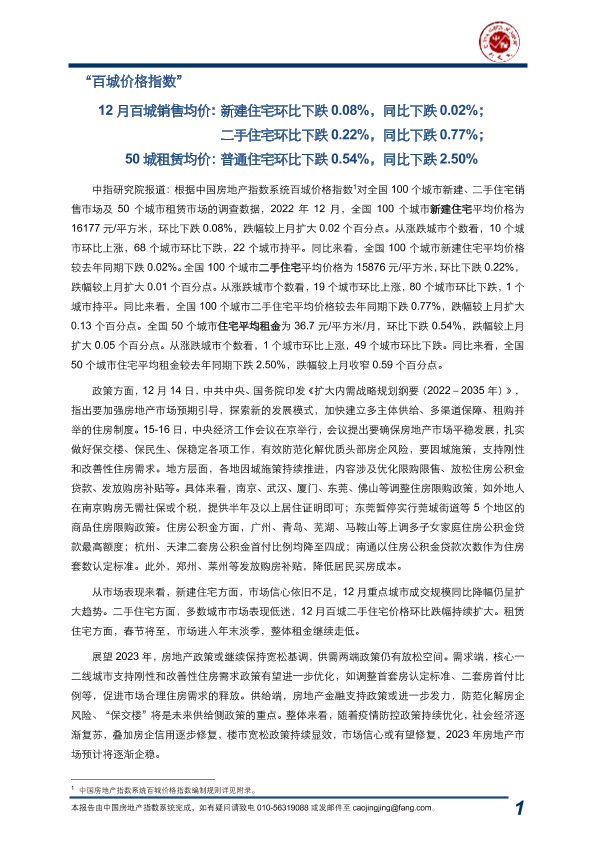 【中指研究院】【20230106】2023-01-06-房地产行业-“百城价格指数”-17页