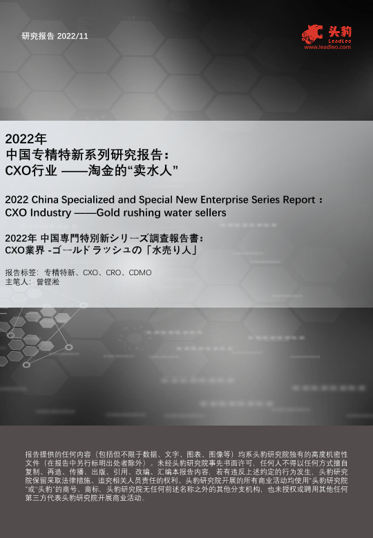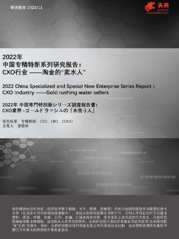 【头豹研究院】【20230110】2022年中国专精特新系列研究报告:CXO行业——淘金的“卖水人”-13页