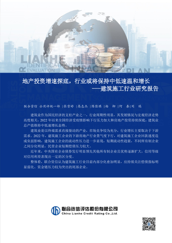 【联合资信】【20230111】地产投资增速探底,行业或将保持中低速温和增长 ---建筑施工行业研究报告-29页