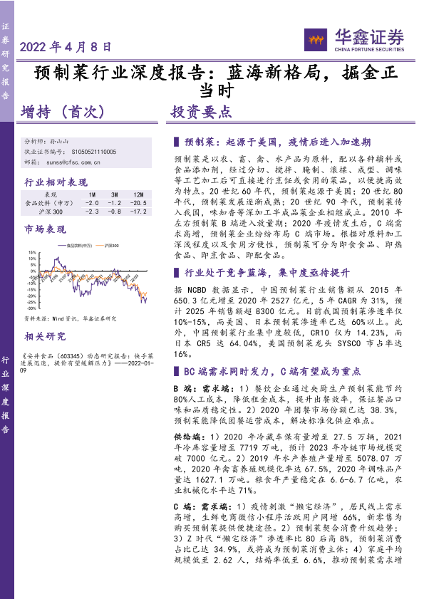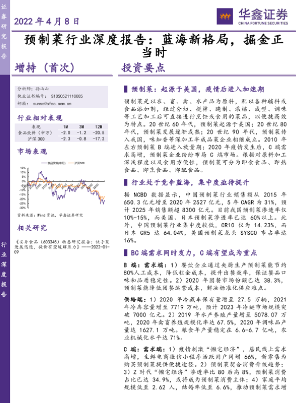 市场预测 投资策略 行业分析 食品安全 预制菜
