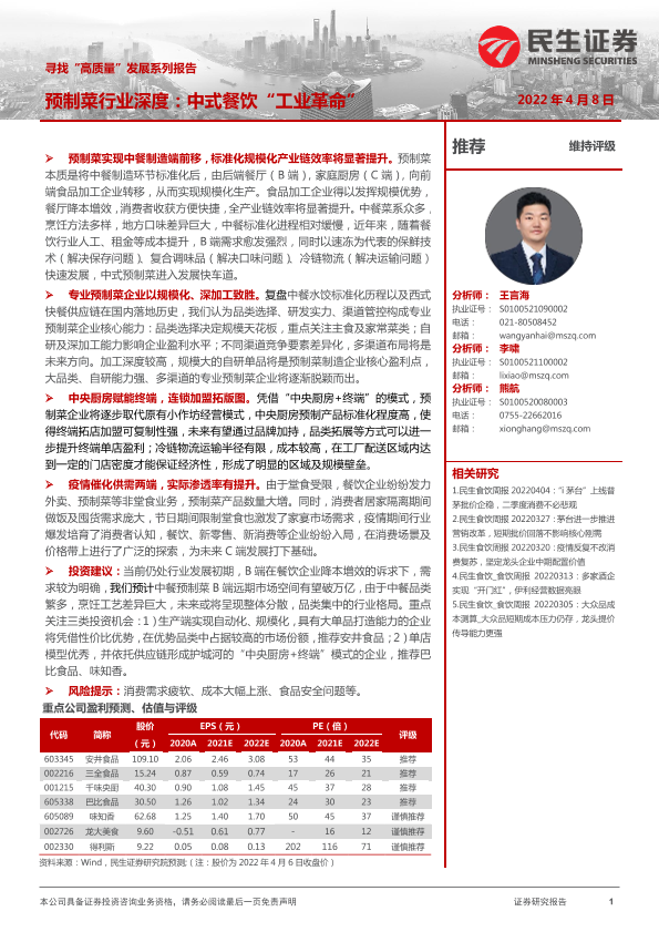 【民生证券】【20220408】预制菜行业深度:中式餐饮“工业革命”-37页