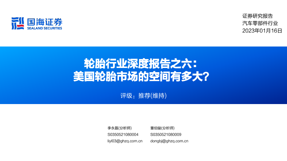 【国海证券】【20230116】轮胎行业深度报告之六-美国轮胎市场的空间有多大?-65页