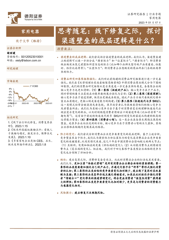【德邦证券】【20230118】家用电器行业专题-思考随笔-线下修复之际-探讨渠道壁垒的底层逻辑是什么?-11页