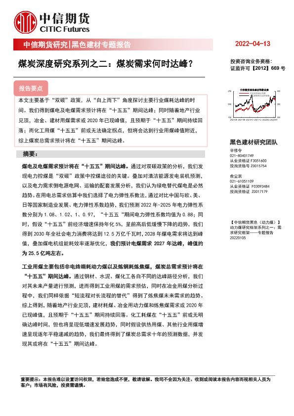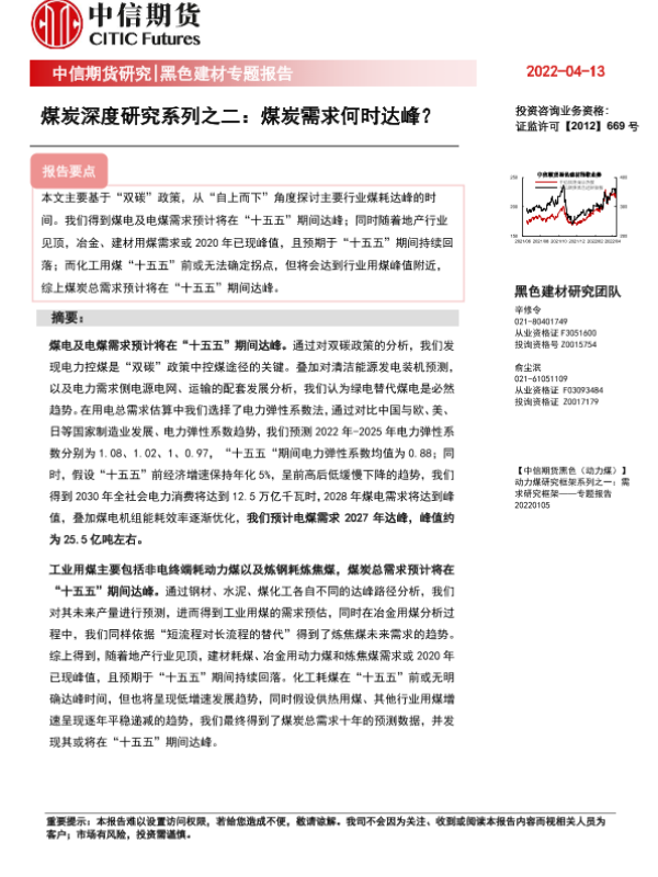 【中信期货】【20220413】黑色建材专题报告:煤炭深度研究系列之二,煤炭需求何时达峰?-25页