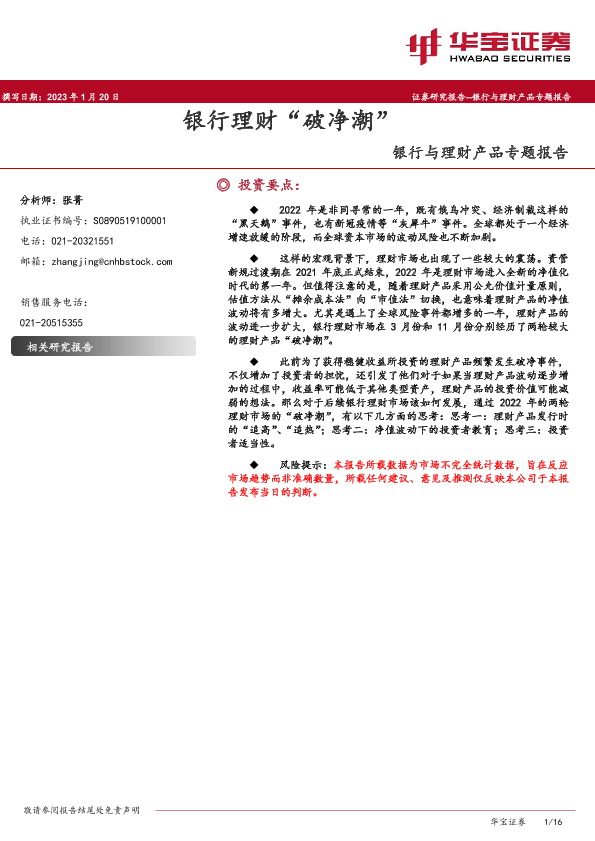【华宝证券】【20230120】2023-01-28-银行与理财产品专题报告:银行理财“破净潮”-16页