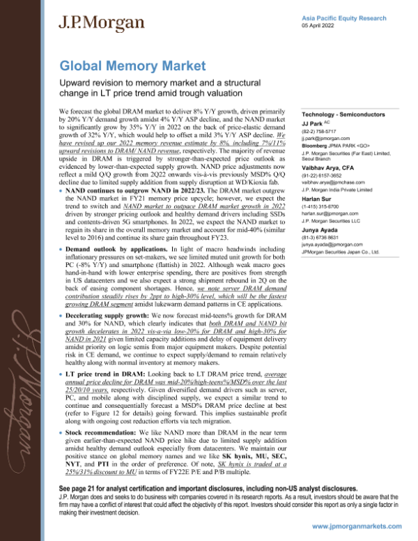 【J.P. Morgan】【20220405】亚太地区科技行业-在估值低谷期间,内存市场向上修正,LT价格趋势发生结构性变化-28页