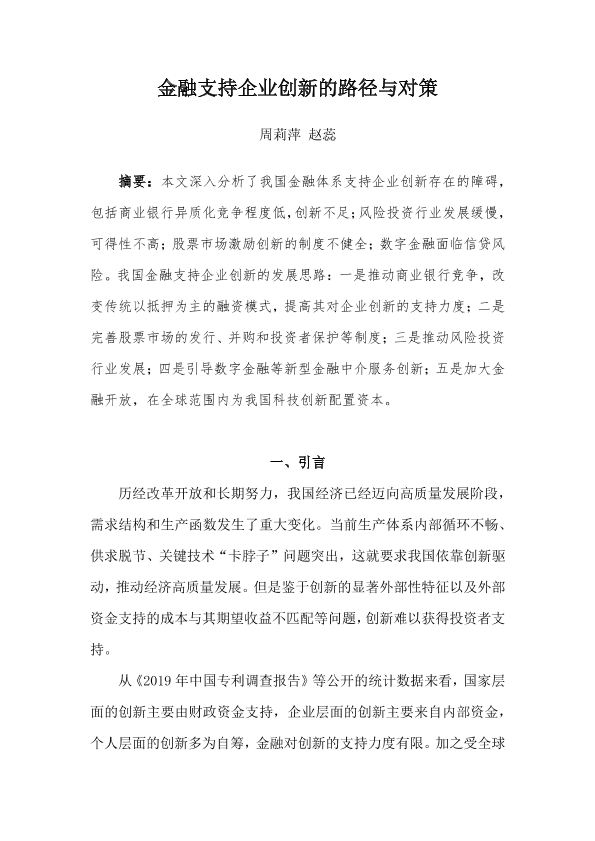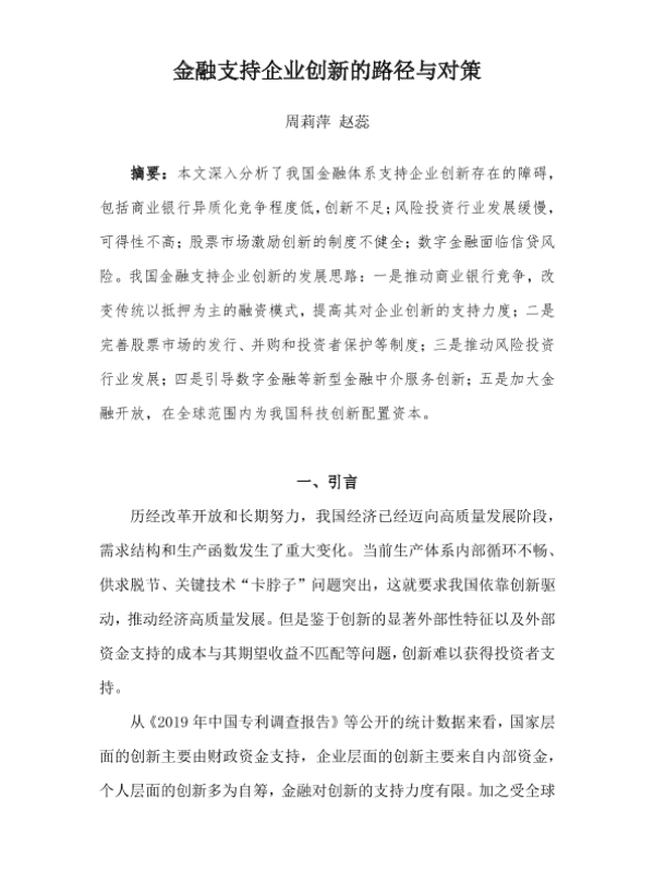 【国家金融与发展实验室NIFD】【20230129】金融支持企业创新的路径与对策-20页