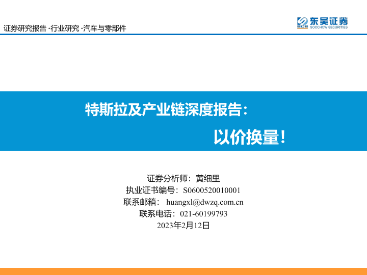东吴证券 以价换量 新能源汽车 汽车产业 特斯拉