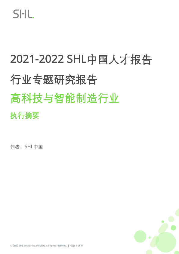 【SHL中国】【20220101】2021-2022 SHL中国人才报告行业专题研究报告:高科技与智能制造行业-11页
