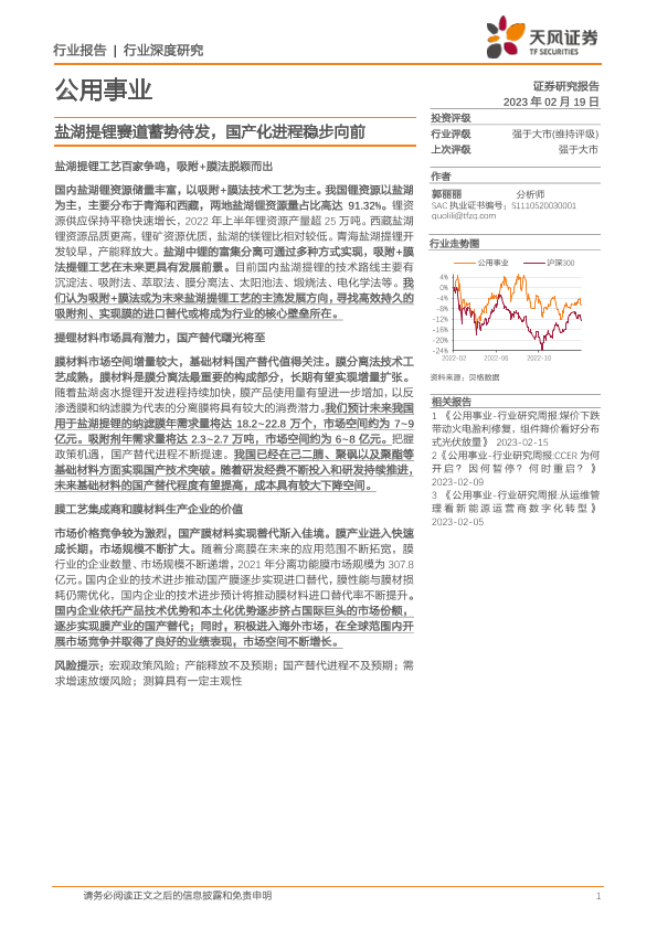 【天风证券】【202302】公用事业行业深度研究-盐湖提锂赛道蓄势待发-国产化进程稳步向前-29页