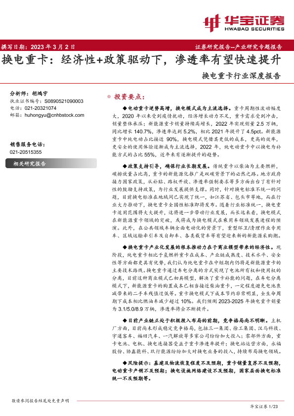 【华宝证券】【202303】2023-03-07-换电重卡行业深度报告-经济性+政策驱动下-渗透率有望快速提升-23页