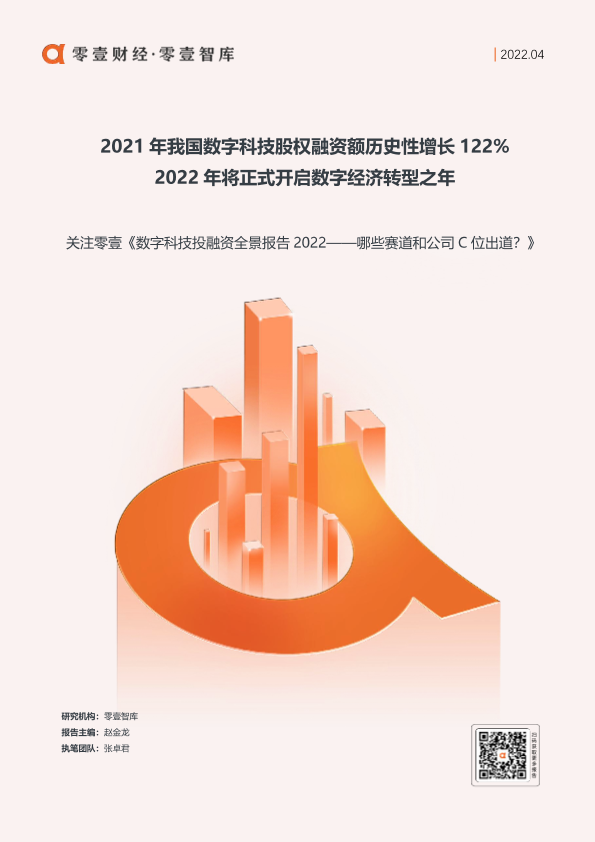 【零壹智库】【20220401】2021年我国数字科技股权融资额历史性增长122%,2022年将正式开启数字经济转型之年-9页