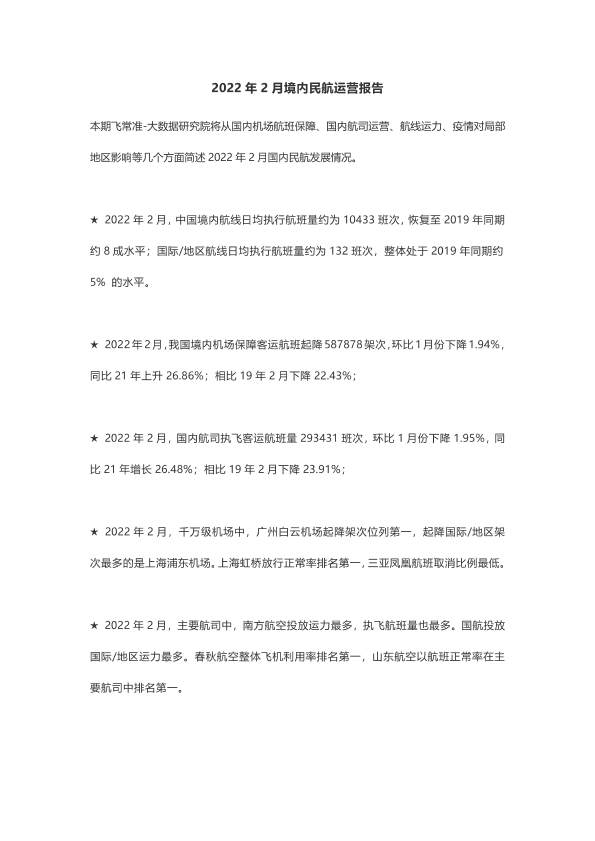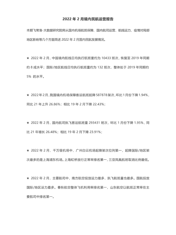 【飞常准-大数据研究院】【202202】2022年2月境内民航运营报告-12页
