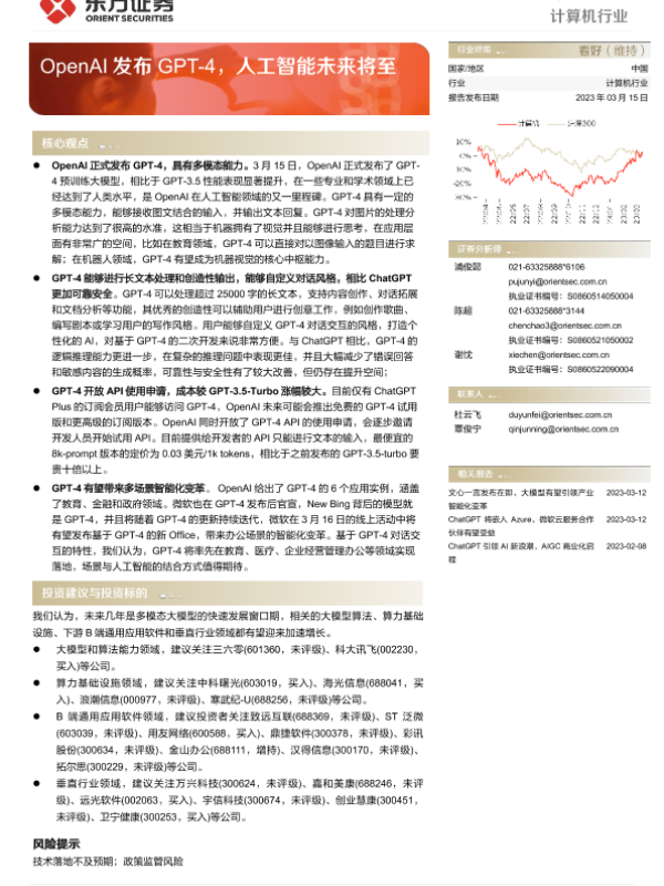 【东方证券】【20230315】2023-03-16-计算机行业动态跟踪-OpenAI发布GPT-4-人工智能未来将至-12页
