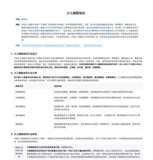 发展趋势 少儿舞蹈培训 市场规模 政策梳理 行业特征