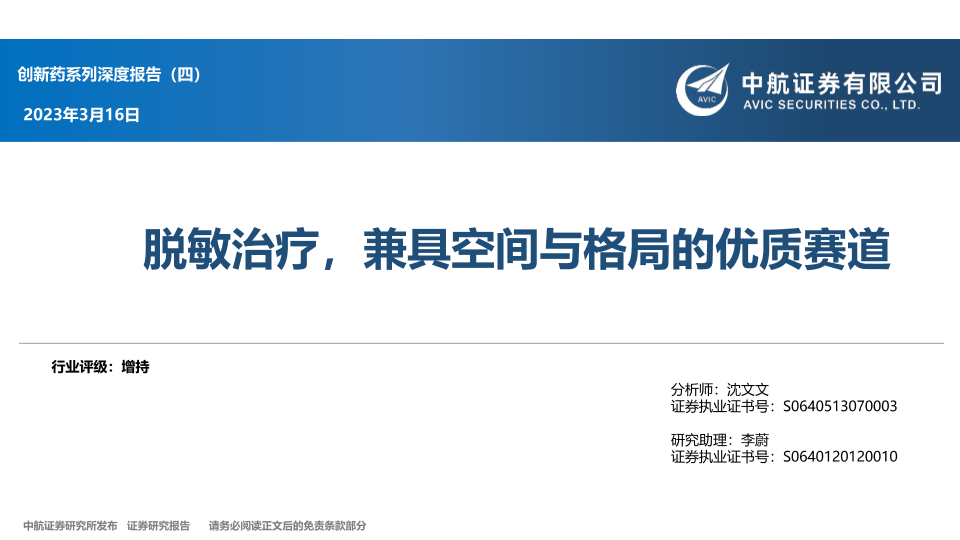 【中航证券】【20230316】创新药系列深度报告(四)-脱敏治疗-兼具空间与格局的优质赛道-30页