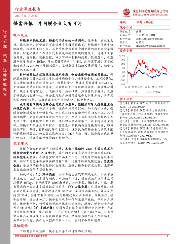【东亚前海证券】【20230323】供需共振,车用镁合金大有可为-27页
