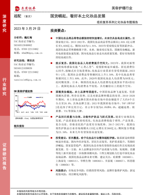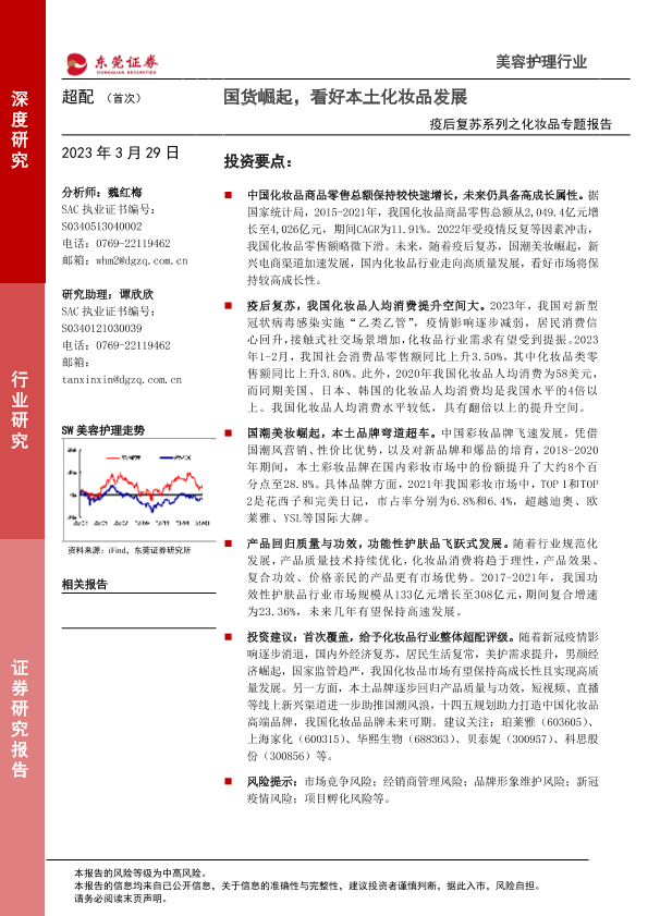 【东莞证券】【20230329】疫后复苏系列之化妆品专题报告-国货崛起-看好本土化妆品发展-23页