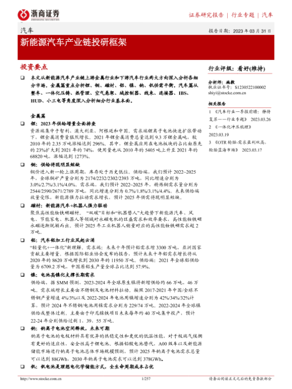 【浙商证券】【20230331】2023-04-01-汽车行业专题-新能源汽车产业链投研框架-257页