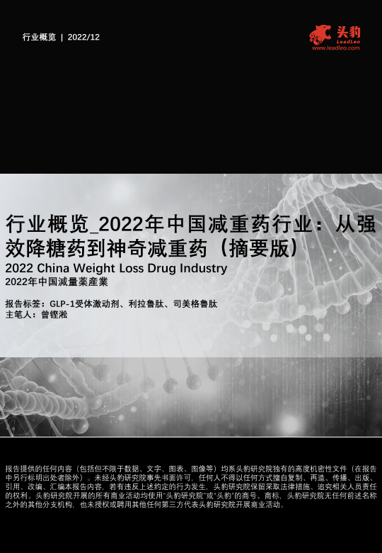 【头豹研究院】【20230405】2022年中国减重药行业:从强效降糖药到神奇减重药(摘要版)-16页