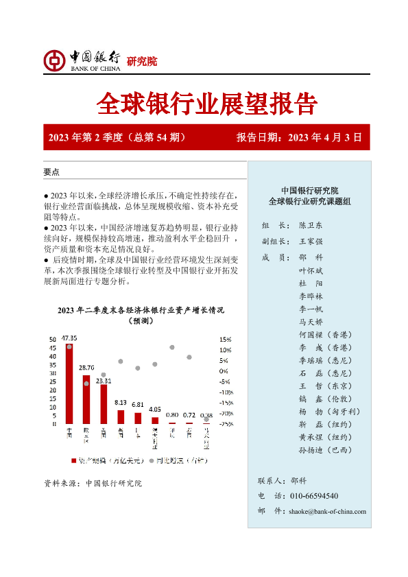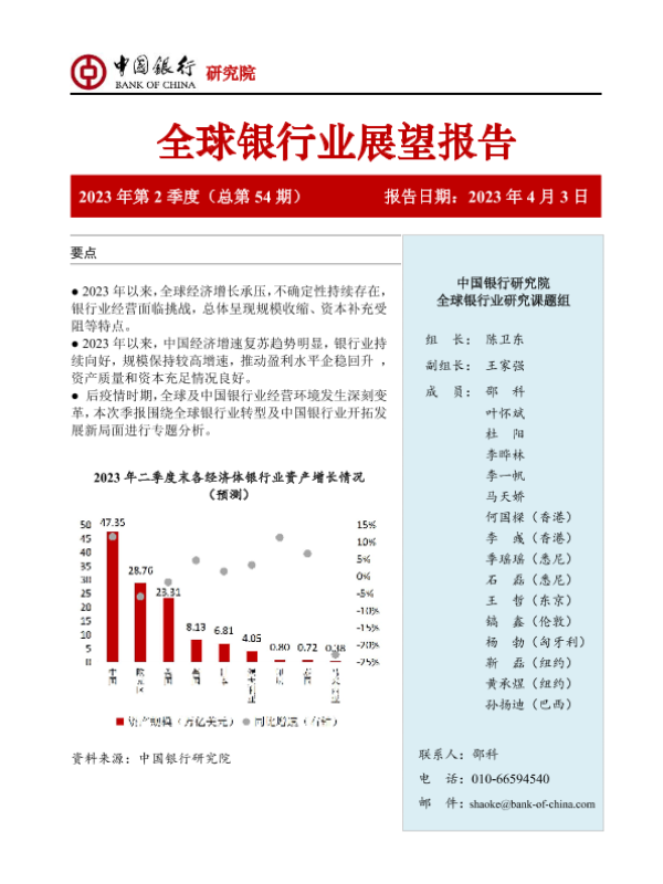【中国银行研究院】【20230403】银行业开拓发展新局面-中国银行全球银行业展望报告(2023年第2季度)-41页