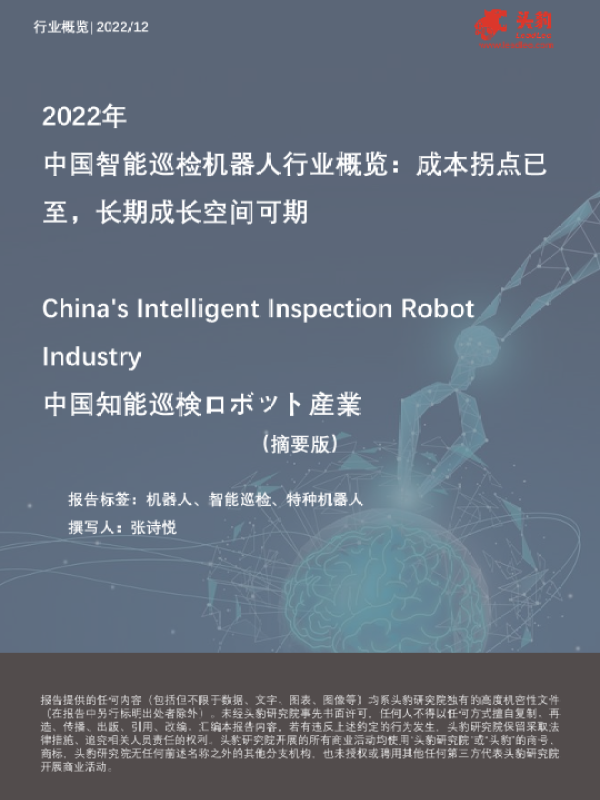 【头豹研究院】【202212】2022年中国智能巡检机器人行业概览:成本拐点已至,长期成长空间可期-10页