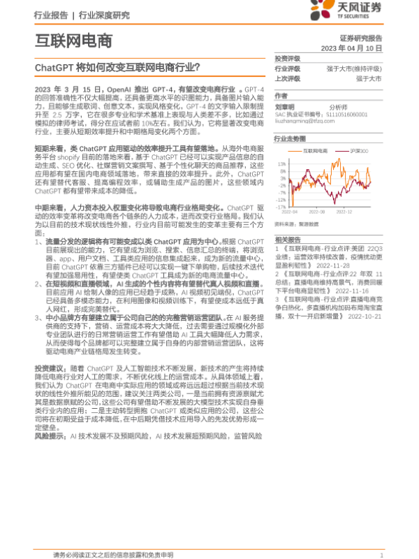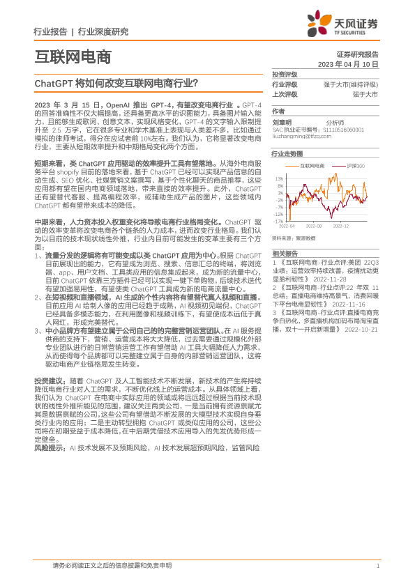 【天风证券】【20230410】互联网电商行业深度研究-ChatGPT将如何改变互联网电商行业?-17页