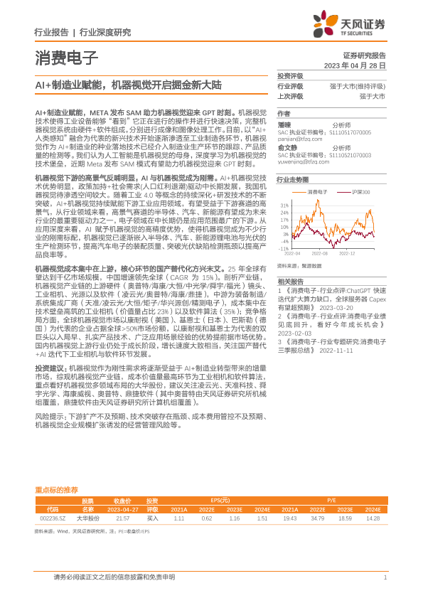 【天风证券】【20230429】消费电子行业深度研究-AI+制造业赋能-机器视觉开启掘金新大陆-32页