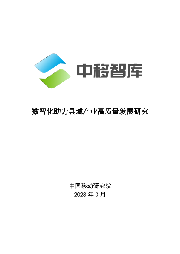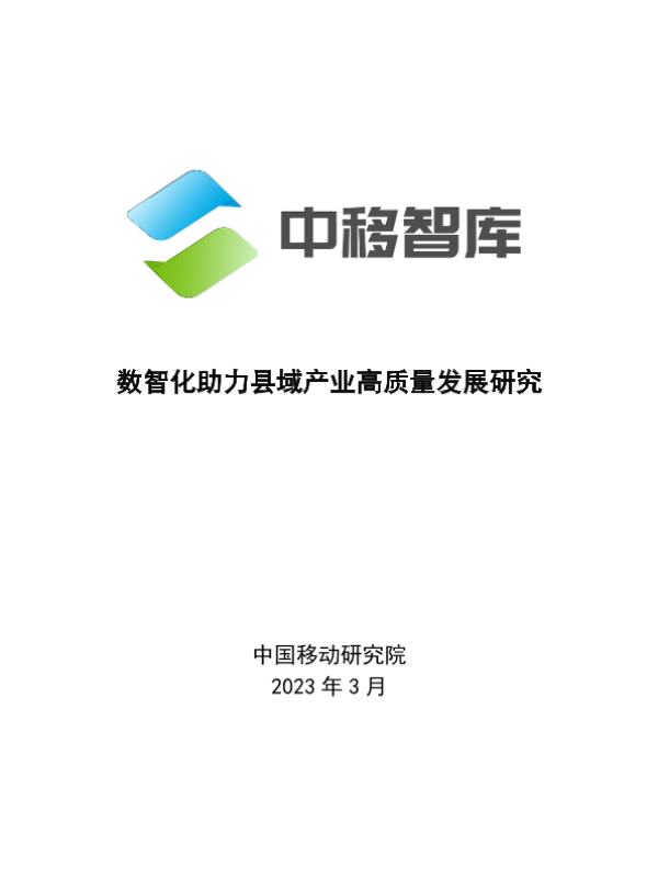 【中国移动研究院】【202303】数智化助力县域产业高质量发展研究报告(2023)-24页