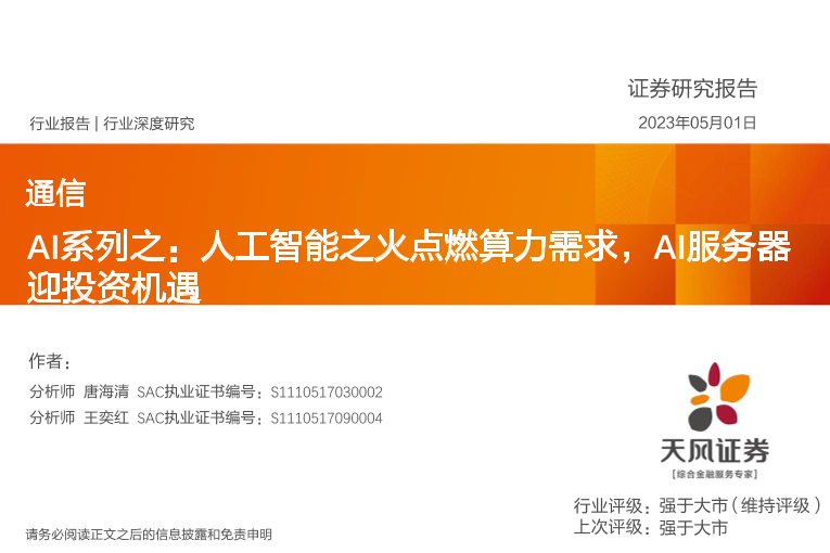 【天风证券】【20230505】通信AI系列之-人工智能之火点燃算力需求-AI服务器迎投资机遇-39页