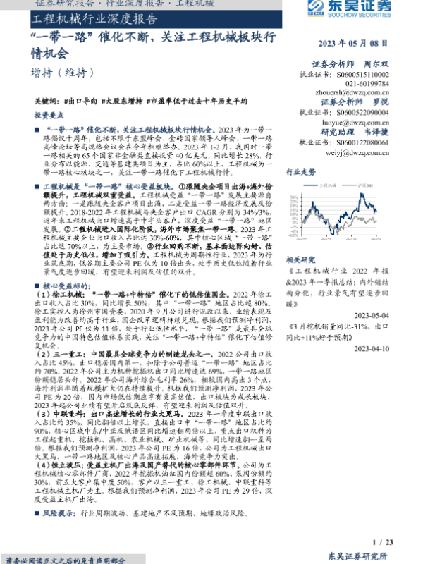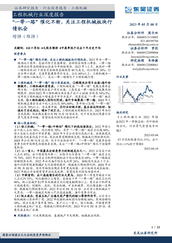 【东吴证券】【20230508】工程机械行业深度报告:“一带一路”催化不断,关注工程机械板块行情机会-23页