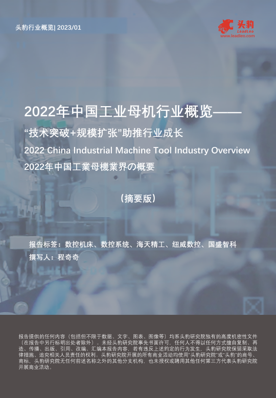 【头豹研究院】【202301】2022年中国工业母机行业概览——“技术突破+规模扩张”助推行业成长-8页