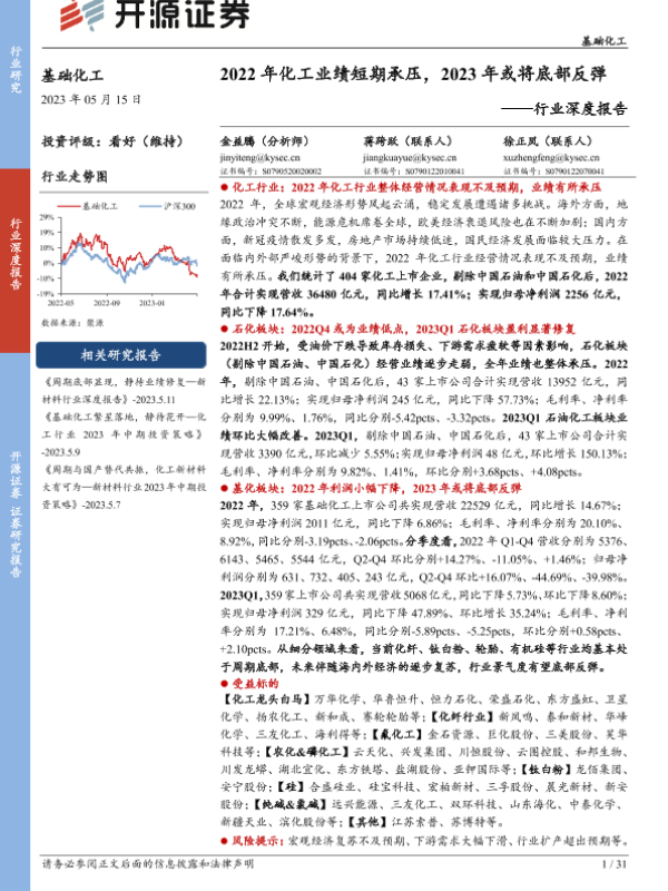 【开源证券】【20230516】2022年化工业绩短期承压,2023年或将底部反弹——行业深度报告-31页
