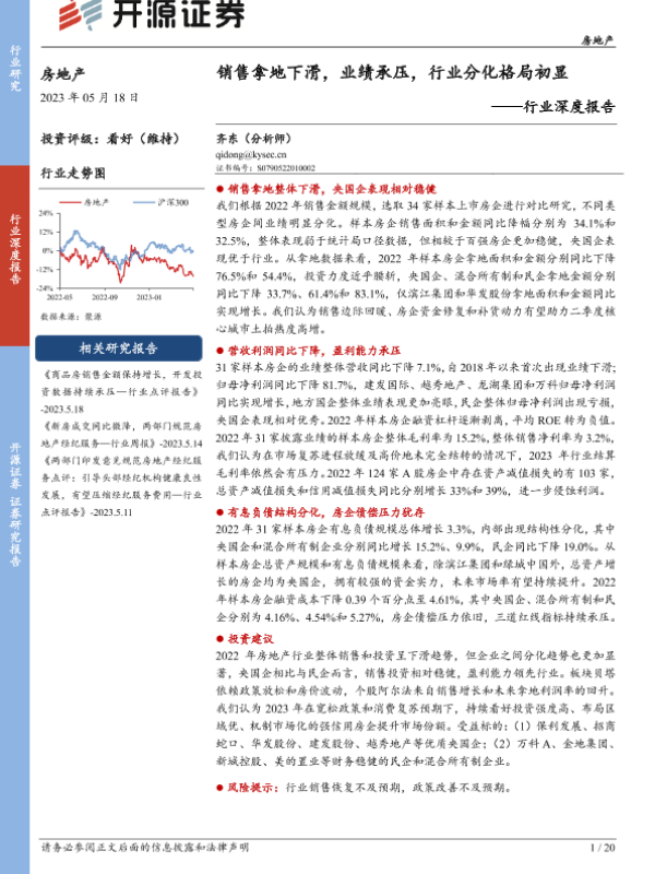 【开源证券】【20230518】2023-05-19-房地产行业深度报告-销售拿地下滑-业绩承压-行业分化格局初显-20页