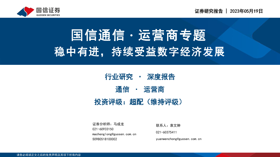 【国信证券】【20230522】国信通信∙运营商专题-稳中有进-持续受益数字经济发展-36页