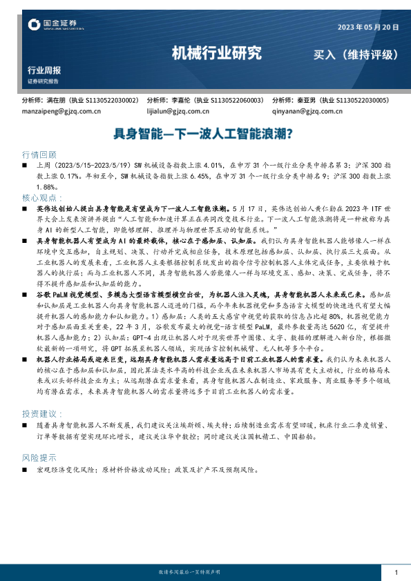 【国金证券】【20230522】机械行业研究-具身智能-下一波人工智能浪潮?-16页