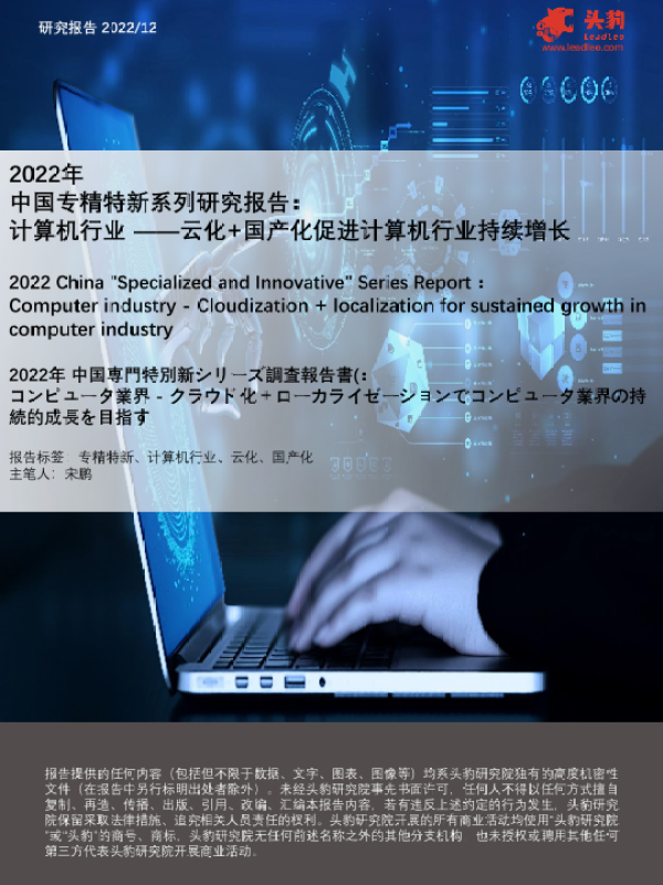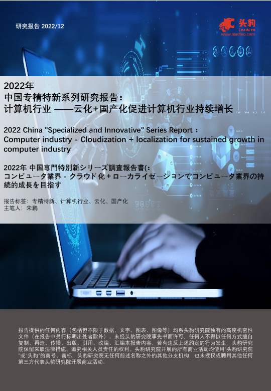 【头豹研究院】【202212】2022年中国专精特新系列研究报告 计算机行业 ——云化+国产化促进计算机行业持续增长-32页