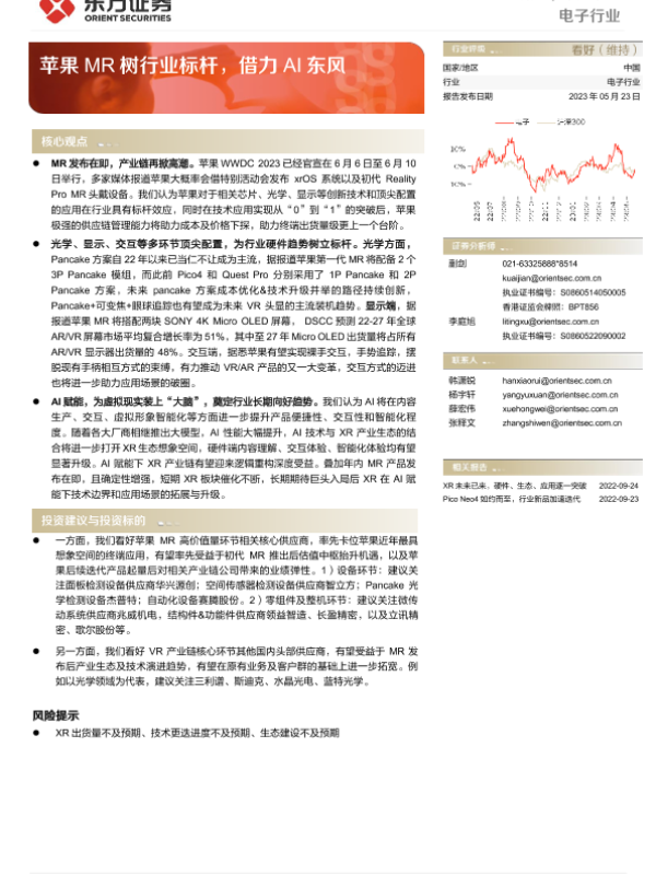 【东方证券】【20230523】2023-05-24-电子行业深度报告-苹果MR树行业标杆-借力AI东风-15页