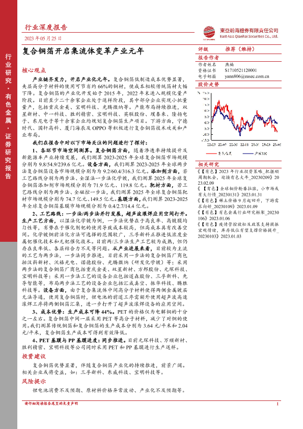 【东亚前海证券】【20230525】复合铜箔开启集流体变革产业元年-42页