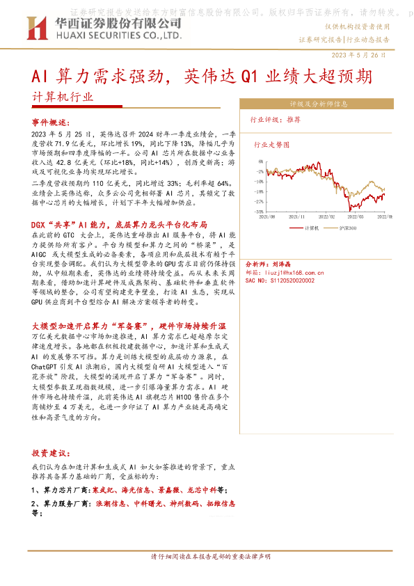 【华西证券】【20230526】AI算力需求强劲,英伟达Q1业绩大超预期-11页