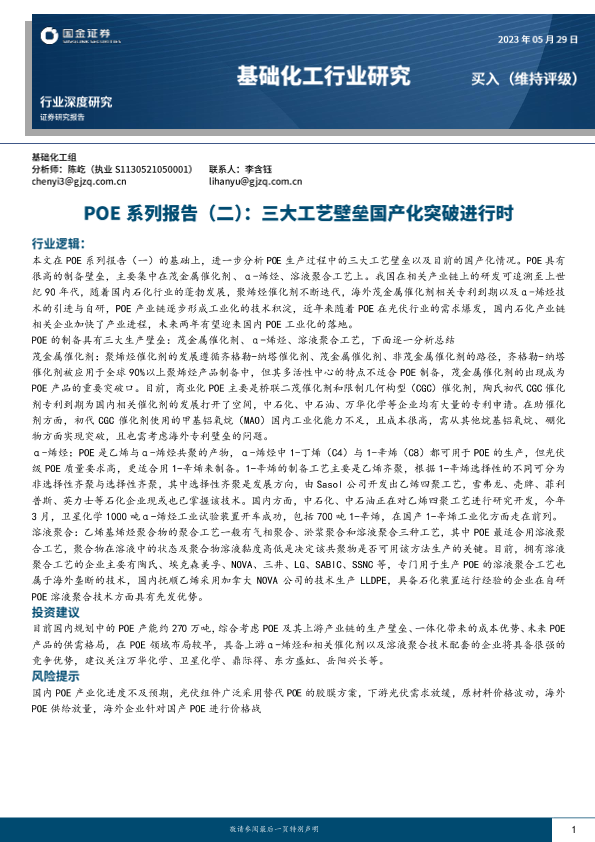 【国金证券】【20230530】基础化工行业研究-POE系列报告(二)-三大工艺壁垒国产化突破进行时-18页
