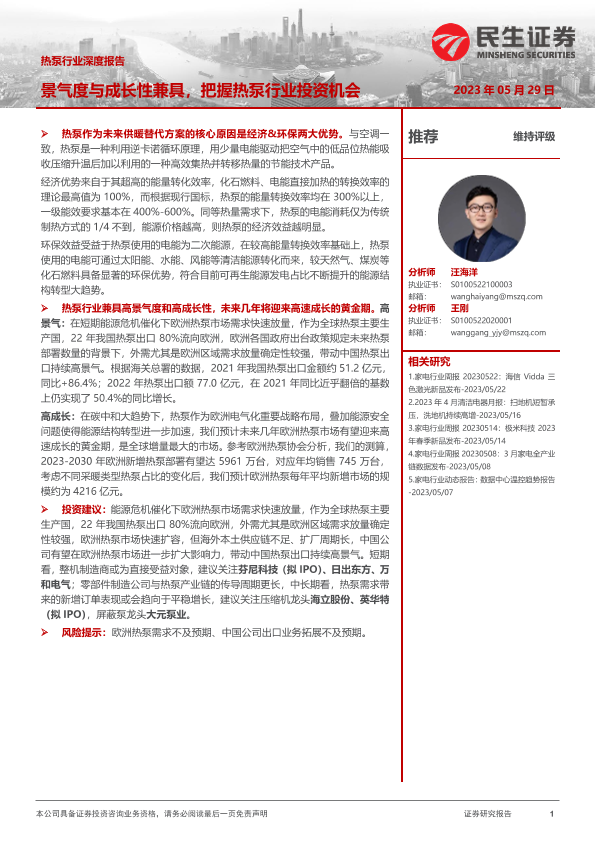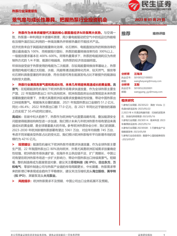 【民生证券】【20230529】热泵行业深度报告-景气度与成长性兼具-把握热泵行业投资机会-32页