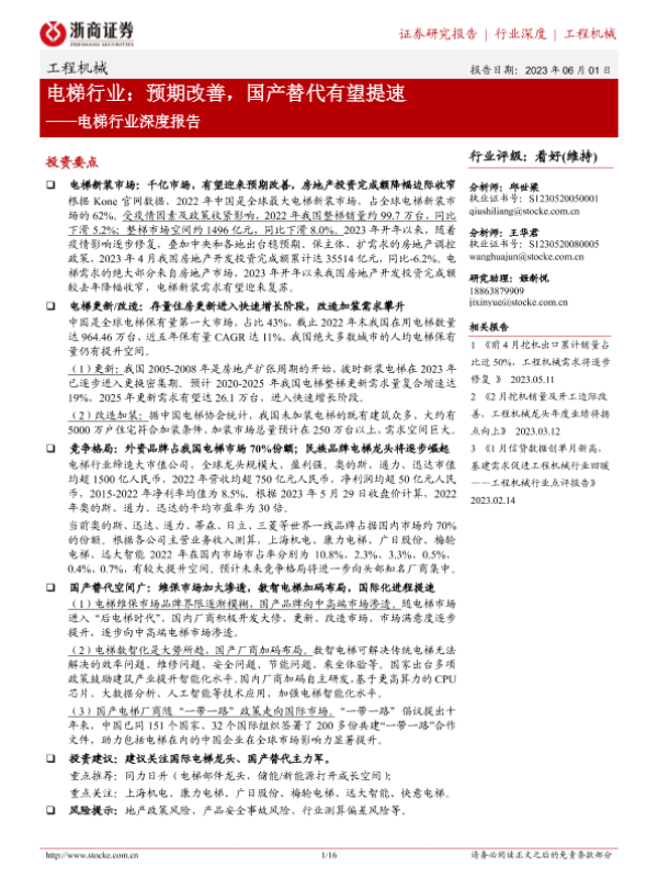 【浙商证券】【20230601】电梯行业:预期改善,国产替代有望提速-16页