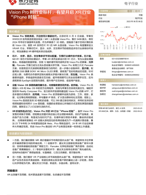【东方证券】【20230608】2023-06-09-电子行业深度报告-Vision Pro树行业标杆-有望开启XR行业“iPhone时刻”-15页