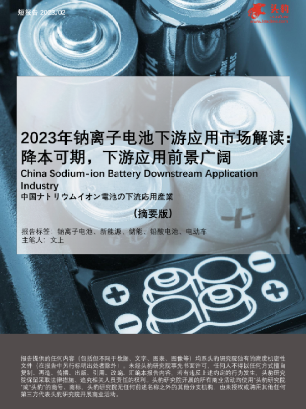 【头豹研究院】【202302】2023年钠离子电池下游应用市场解读-降本可期-下游应用前景广阔-10页