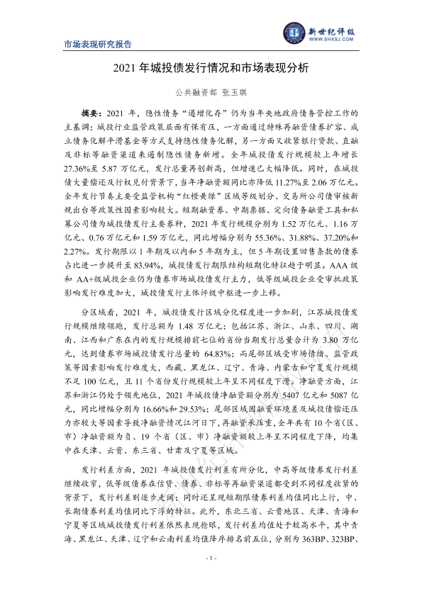 【新世纪评级】【20210101】2021年城投债发行情况和市场表现分析-26页